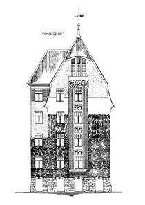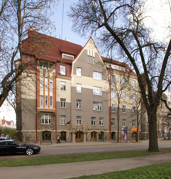 Apartment house that belonged to architect K. Pēkšēns. He was the author of the design together with architect Eižens Laube. The building is designed in a typical manner of National Romanticism by using various building materials in the finish of the façades and decorating it with the motifs of Latvian ethnographic ornaments. Currently, various offices are located in the building.