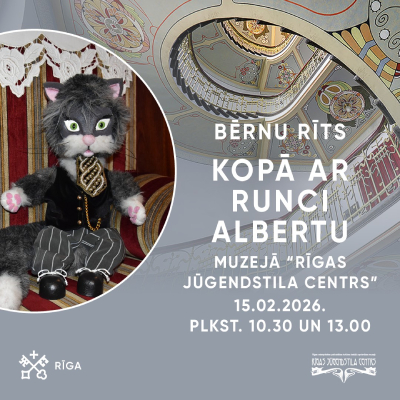 Muzejs “Rīgas Jūgendstila centrs” 2026. gada 15. februārī plkst. 10.30 un 13.00 aicina ģimenes ar bērniem uz ikmēneša sarīkojumu “Bērnu rīts kopā ar Runci Albertu”.