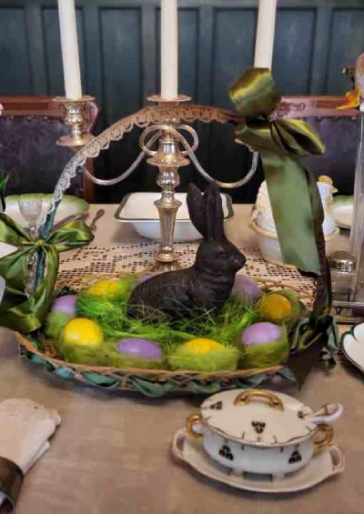 Īpaša uzmanība būs vētīta ēdamistabas galda klājumam, jo pilsētnieku mājoklī Lieldienu svētku noskaņa visbiežāk koncentrējās tieši ap galdu. Ēdamistaba bija svinību norises centrs, ap kuru pulcējās ģimene un viesi. Lieldienu laikā tā tika īpaši rotāts – ar krāsotām olām, dekoratīviem olu trauciņiem, pūpoliem, ziediem un saldiem svētku simboliem, tostarp šokolādes zaķiem un cepuma jēriņu. Uz smalki klāta galda, līdzās porcelāna traukiem un izlocītām salvetēm, svētku rotājumi radīja pavasarīgu un svinīgu noskaņu. Lieldienu mielasts ar krāsotām olām simbolizēja atjaunošanos un dzīvību, kas līdz ar pavasari ienāk mājās un cilvēku ikdienā.